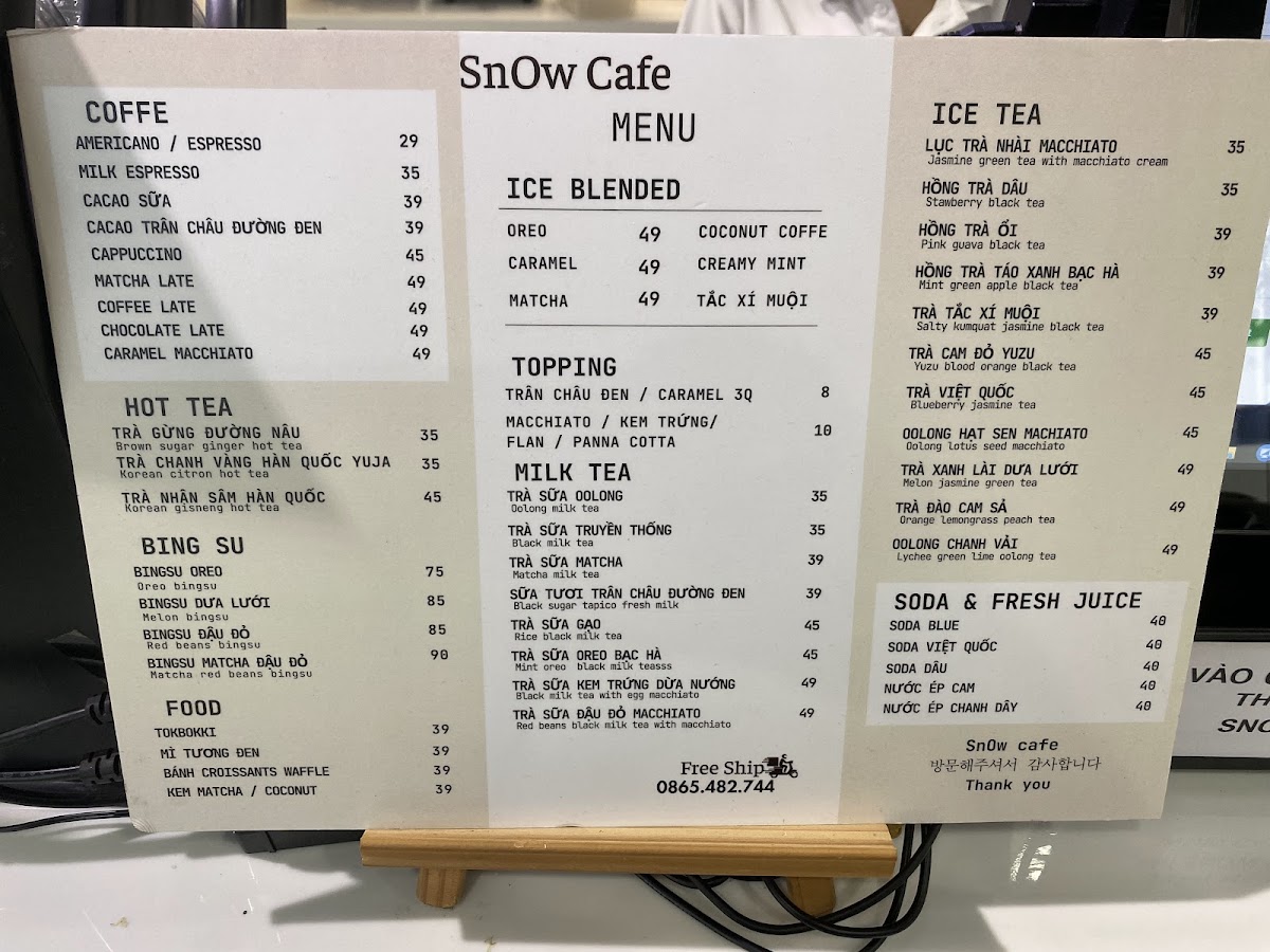 SnOw cafe Dĩ an Menu